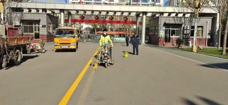 為保障學(xué)校正常的教學(xué)秩序,公司施工人員主動(dòng)利用周末休息時(shí)間開展施工。作業(yè)期間,他們嚴(yán)格參照精準(zhǔn)測量數(shù)據(jù)與科學(xué)合理的規(guī)劃方案,清晰規(guī)范地劃分校園道路、機(jī)動(dòng)車道、非機(jī)動(dòng)車道以及步行道。醒目的黃白相間分道線筆直規(guī)整,自行車停放區(qū)標(biāo)線整潔清晰,校園交通標(biāo)線“補(bǔ)妝”后,變得更加美觀醒目。