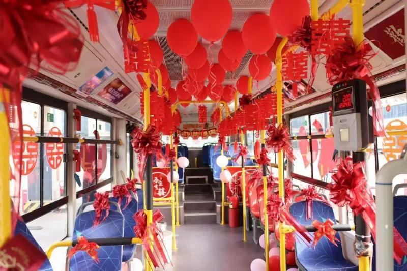 為滿足市民公交婚車個(gè)性化服務(wù)需求,公司以“個(gè)性元素設(shè)計(jì)+點(diǎn)對(duì)點(diǎn)運(yùn)行”的多重專屬服務(wù)模式,將公交婚車裝扮成流動(dòng)的“愛情紀(jì)念冊(cè)”,推出了常規(guī)公交車、寶寶巴士等多種車型供新人選擇,并提供迎親、賓客接送等全鏈條服務(wù)。公交婚車內(nèi)飾以彩帶、囍字掛飾營(yíng)造浪漫氛圍,讓每一寸空間都盛滿愛意,“點(diǎn)對(duì)點(diǎn)”路線規(guī)劃串聯(lián)起家與幸福的彼岸,行程安全順暢,親友團(tuán)全程共乘一輛車,在溫馨互動(dòng)中共同見證愛情足跡,承載著歡聲笑語(yǔ)奔赴幸福旅程。