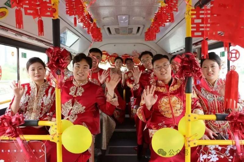 為圓滿完成此次集體婚禮保障任務(wù),公司精心調(diào)配4臺(tái)新能源公交車,從設(shè)計(jì)、制作到運(yùn)營各環(huán)節(jié),提供獨(dú)具個(gè)性的全方位婚車服務(wù),全力營造傳統(tǒng)婚禮的喜慶氛圍。