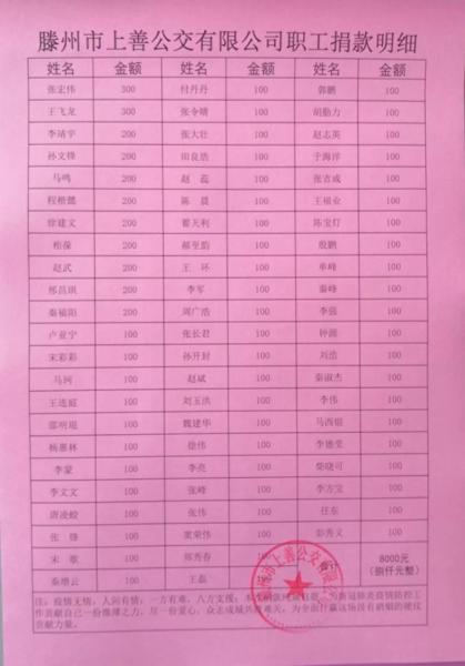 涓涓細流匯成愛與勇氣的海洋,不同數(shù)額的款項不斷匯入的背后,凝聚的是廣大職工對奮戰(zhàn)在一線的醫(yī)務人員和其他城市抗擊疫情人員的愛心與支持,在抗擊疫情的攻堅時刻,上善公交人奉獻愛心,責無旁貸,以自己的實際行動,盡綿薄之力積極助力疫情防控,為全面打贏這場沒有硝煙的硬仗貢獻力量。