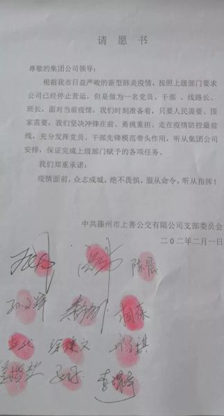 在新型冠狀病毒感染的肺炎疫情阻擊戰(zhàn)中,上善公交黨員干部紛紛主動請纓,發(fā)出了“作為一名黨員、干部、線路長、班長面對當(dāng)前疫情,我們時刻準(zhǔn)備著,只要人民需要、國家需要,我們堅決沖鋒在前、勇挑重?fù)?dān)、走在疫情防控最前沿,充分發(fā)揮黨員、干部先鋒模范帶頭作用”的共同心聲。疫情面前,黨員們以實際行動踐行初心,以心中信仰擔(dān)當(dāng)使命,為人民群眾的生命安全保駕護(hù)航!