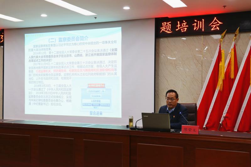 會上,市紀委監(jiān)委派駐第四紀檢監(jiān)察組組長陳榮義以豐富的工作實踐經(jīng)驗和扎實的理論功底,以《全面從嚴治黨 護航企業(yè)發(fā)展》為題,結(jié)合當前反腐環(huán)境形勢,監(jiān)察委員會職能等課題,以案為鑒、以案說法,并通過播放《永葆政治本色》專題片,深入淺出地就如何抓好黨風廉政建設(shè)和反腐敗工作進行了深刻剖析闡述,給全體受訓(xùn)人員進行了一次十分生動的廉政教育課。