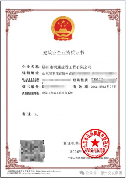 經(jīng)省住房和城鄉(xiāng)建設(shè)廳核查批準,近日,交發(fā)集團潤通公司成功取得建筑工程施工總承包貳級資質(zhì)。