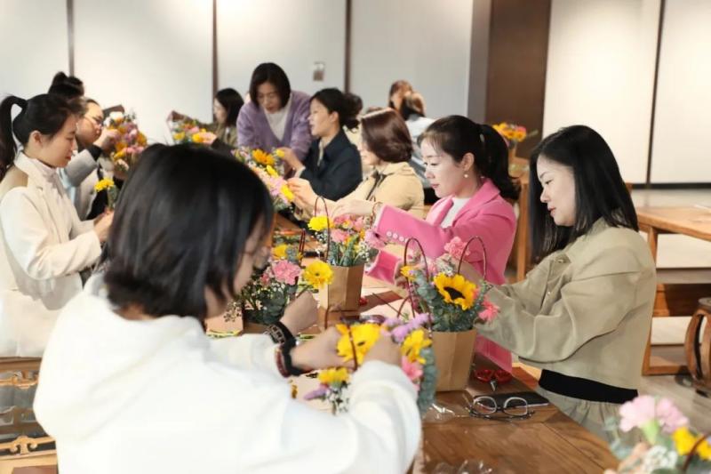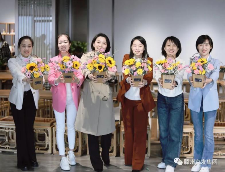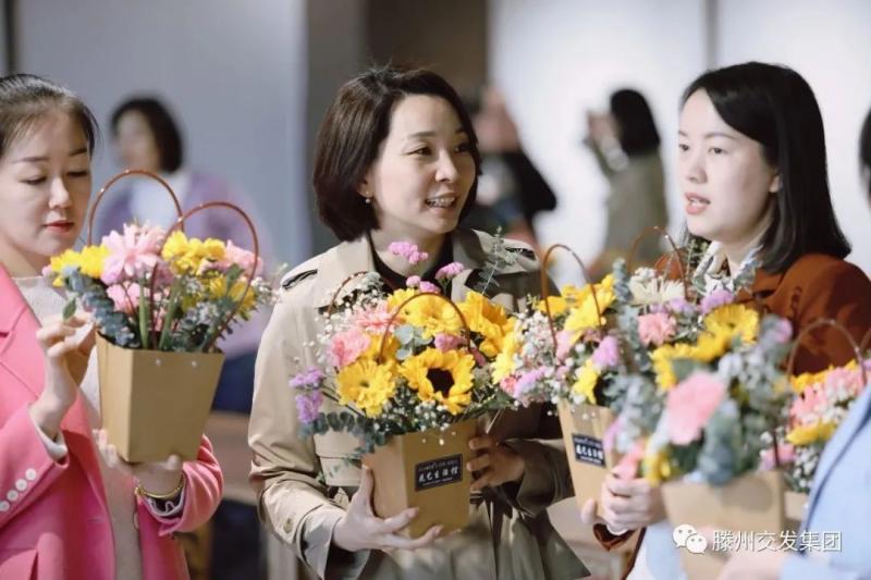 遲日江山麗,春風(fēng)花草香!睘檎故緩V大女職工奮發(fā)向上的精神風(fēng)貌,豐富女職工業(yè)余文化生活,3月7日,滕州市婦聯(lián)、市交通發(fā)展集團(tuán)在滕州市婦女兒童活動(dòng)中心舉辦了慶祝“三八節(jié)”--“女性素質(zhì)提升”花藝技能培訓(xùn),旨在以花遇人,以花喻人,以花育人,讓參與活動(dòng)的女職工們?cè)诨ɑ艿姆枷闩c妍美中感受美、欣賞美、創(chuàng)造美,以花傳情,傳遞快樂,陶冶情操,提升美感。市婦聯(lián)黨組成員、副主席、市婦女兒童事務(wù)服務(wù)中心主任王蕾,滕州市婦聯(lián)四級(jí)主任科員黃秀蓮,集團(tuán)黨委委員、副總經(jīng)理、工會(huì)主席李丹出席活動(dòng)。