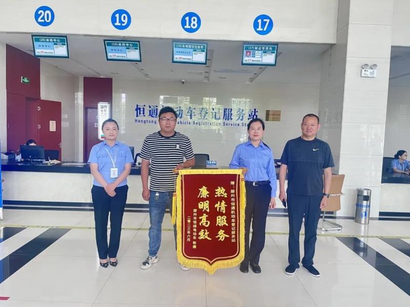 “非常感謝貴公司為我們提供的各項便利服務,......”。6月9日上午,滕州恒闊電動車車行張先生來到交發(fā)集團恒通公司,將一面寫有“熱情服務 廉明高效”的錦旗送到工作人員手中,對窗口工作人員的熱心、誠心、貼心服務給予高度評價并表示真誠的感謝。
