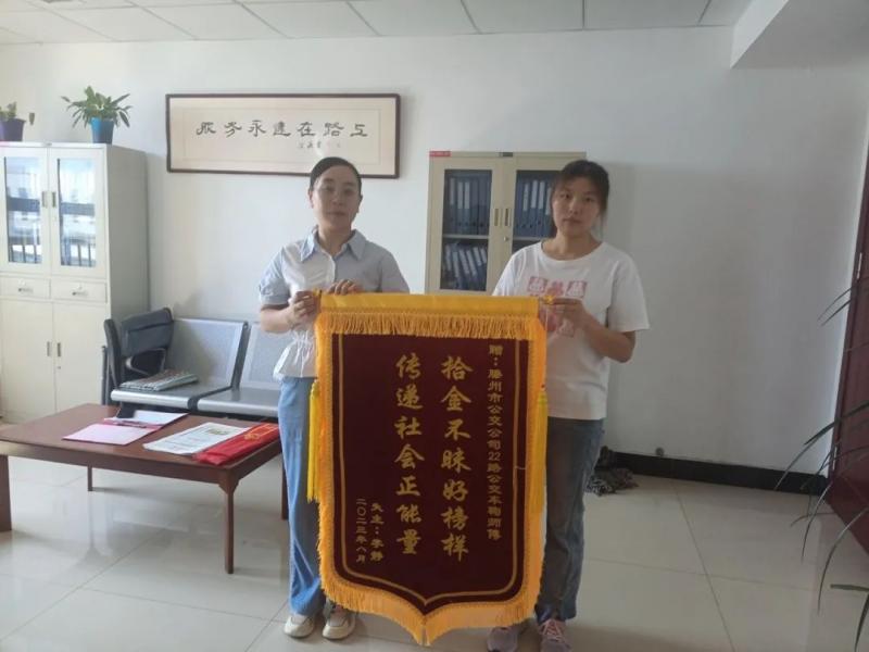 8月22日上午,家住威尼斯小區(qū)的李女士將一面印有“拾金不昧好榜樣 傳遞社會正能量”的錦旗送到交發(fā)集團公交公司,對22路駕駛員鞠傳東表示感謝。