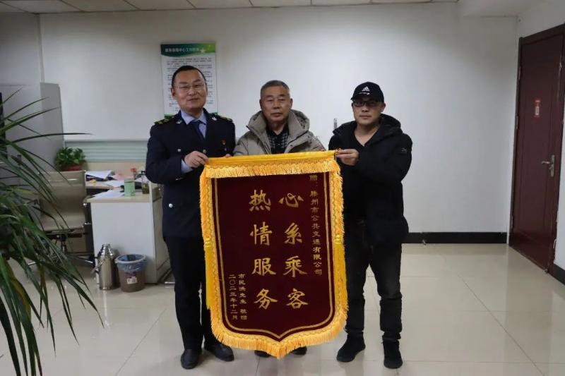 12月29日下午,市民洪先生專程來到交發(fā)集團公交公司,將一面印有“心系乘客 熱情服務”的錦旗送到工作人員手中,對公司工作人員熱心接力幫助其找回失物表示感謝。