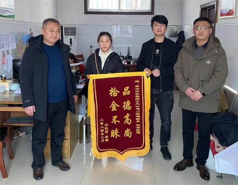 2月27日,市民劉先生專程來到交發(fā)集團公交二分公司,送來一面印有“拾金不昧 品德高尚”的錦旗,以此感謝22路駕駛員趙青師傅。