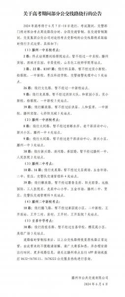 關(guān)于高考期間部分公交線路繞行的公告