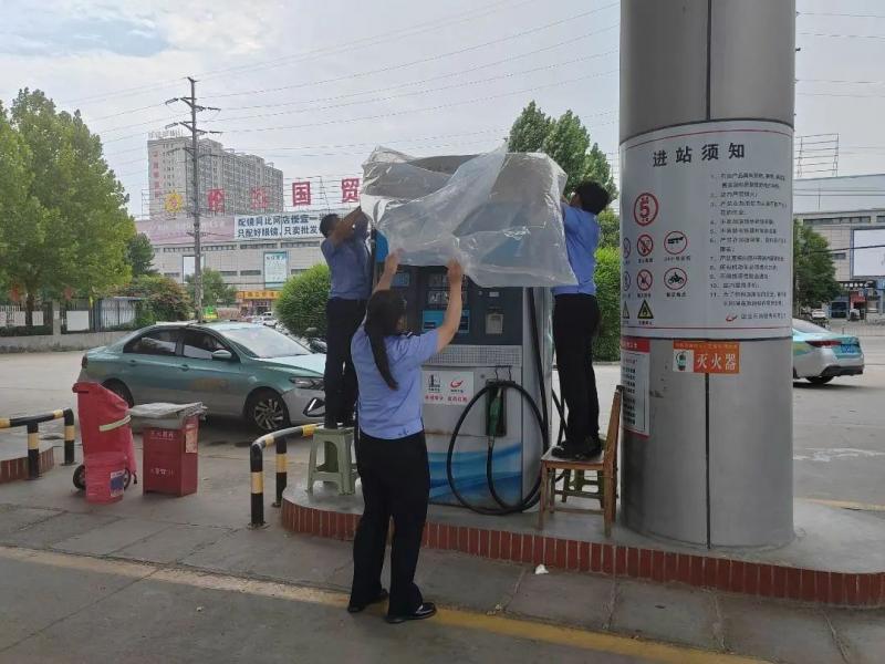 本次檢查主要對加油站排水系統(tǒng)、儲油設(shè)施、防汛物資儲備情況等方面進(jìn)行重點排查,對可能出現(xiàn)的汛情隱患進(jìn)行現(xiàn)場排查處理。工作人員利用沙袋、塑料布等對油罐觀察井和管道溝進(jìn)行封堵、并對加油機進(jìn)行遮蓋,做好油罐水位的監(jiān)測工作,防止發(fā)生因油罐水位超標(biāo)引發(fā)的加油站油品質(zhì)量事故。同時嚴(yán)格按照加油站雷電防范規(guī)范進(jìn)行操作。