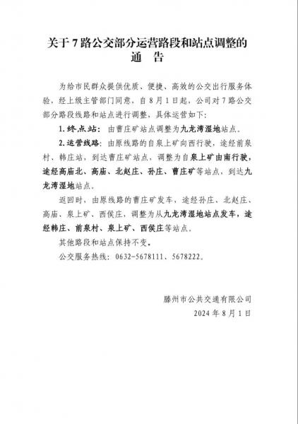 關(guān)于7路公交部分運(yùn)營路段和站點(diǎn)調(diào)整的通告