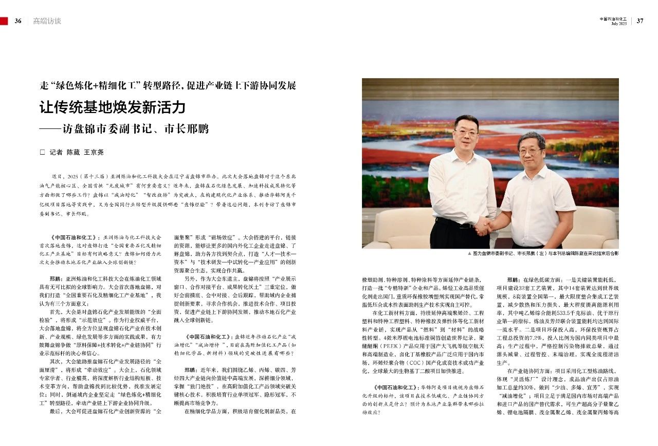 《中國石油和化工》:作為全國首批“無廢城市”,盤錦在綠色石化發(fā)展方面有哪些可推廣的經(jīng)驗(yàn)?
